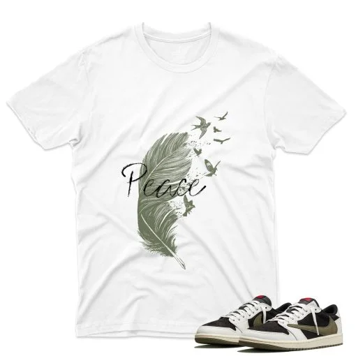 Travis Scott J1 Low OG Olive – Peace T-Shirt – White